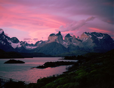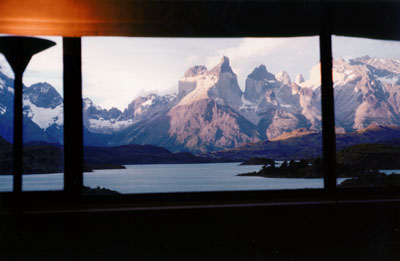 The hotel was alive with activity -- mostly folks drinking "Pisco Sours" (roughly, a Chilean Margarita), bragging about their heroic hikes, and choosing the next day's activities. The sun didn't set until about 10 PM, after which we were treated to this spectacular red sunset display.