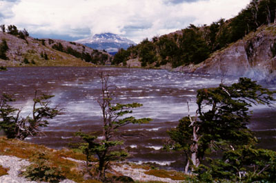 Our first taste of the incredible Patgonian summer winds -- enough to whip up an impressive spray; we found ourselves blown off the trail a few times.